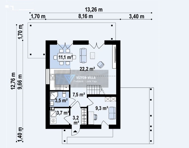 GRÖNLAND MODEL 105 m2 Prefabrik Hafif Çelik Dubleks Ev/Villa