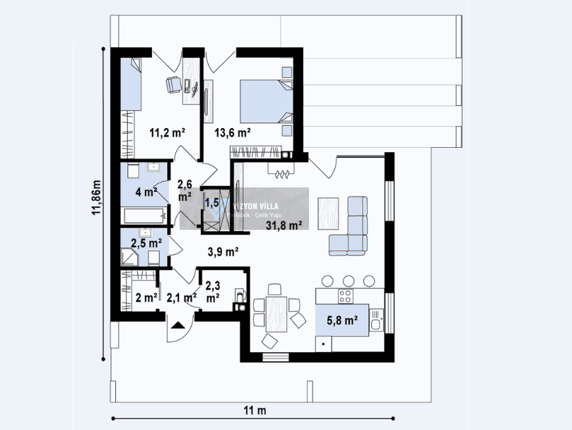 ZEUGMA MODEL 105 m2 Prefabrik Hafif Çelik Ev/Villa